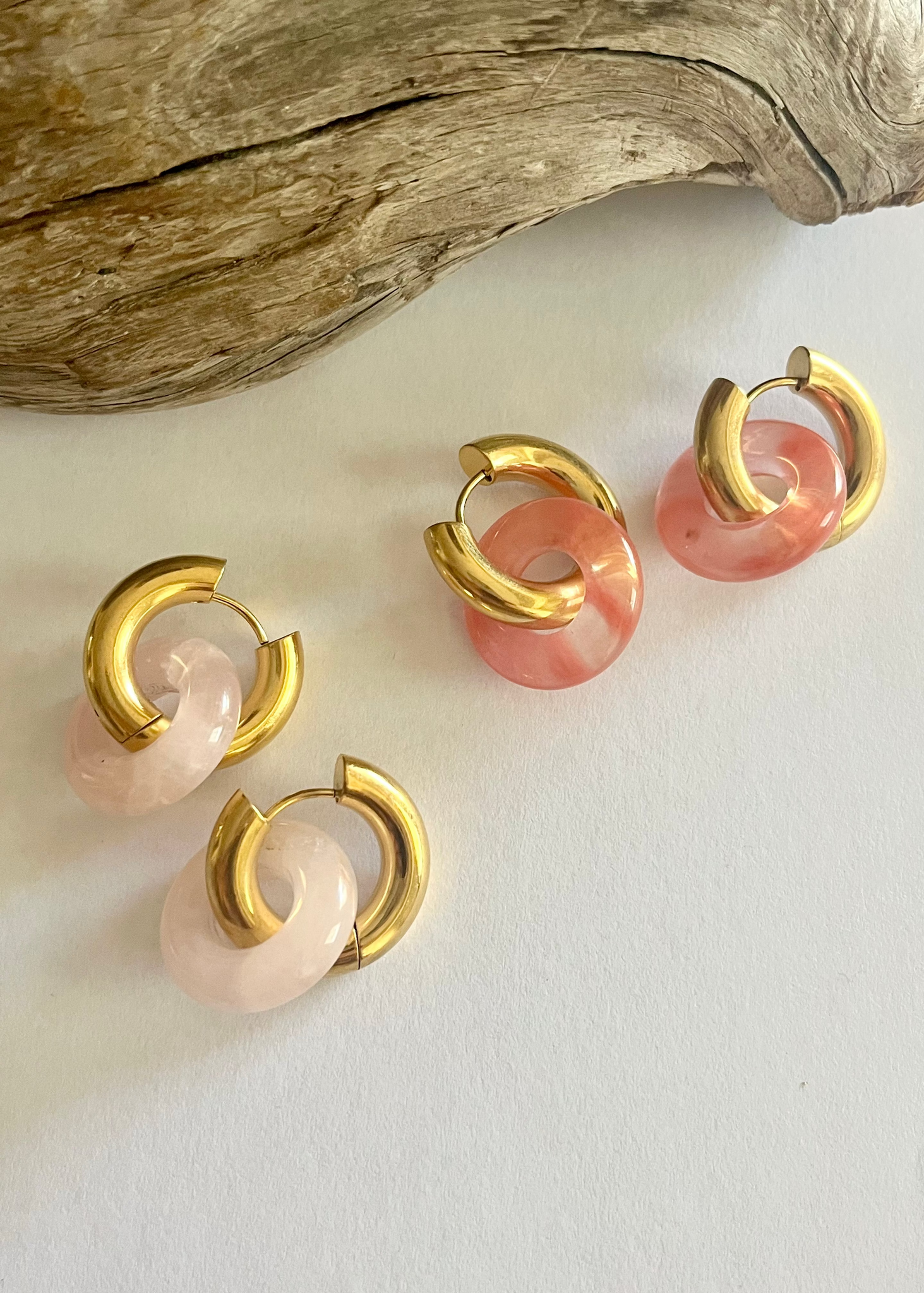 - gold hoop with rose quartz charm or watermelon rose quartz gold charm